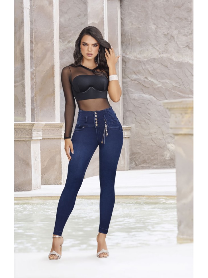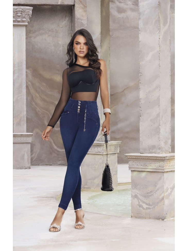 Descubre la innovadora ropa colombiana en MagiCola Fashion. Jeans de 5 botones, con control abdominal, sin bolsillos, en piel de durazno, estilo pitillo.